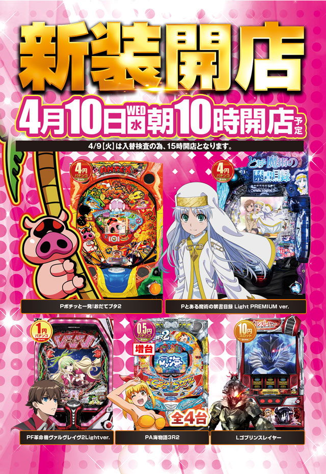 4月10日(水)新装開店!!あさ10時開店!(予定)