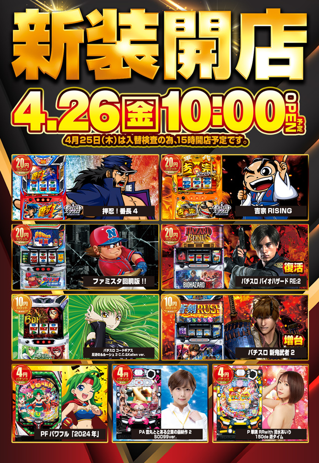 4月26日(金)新装開店!!あさ10時開店!(予定)