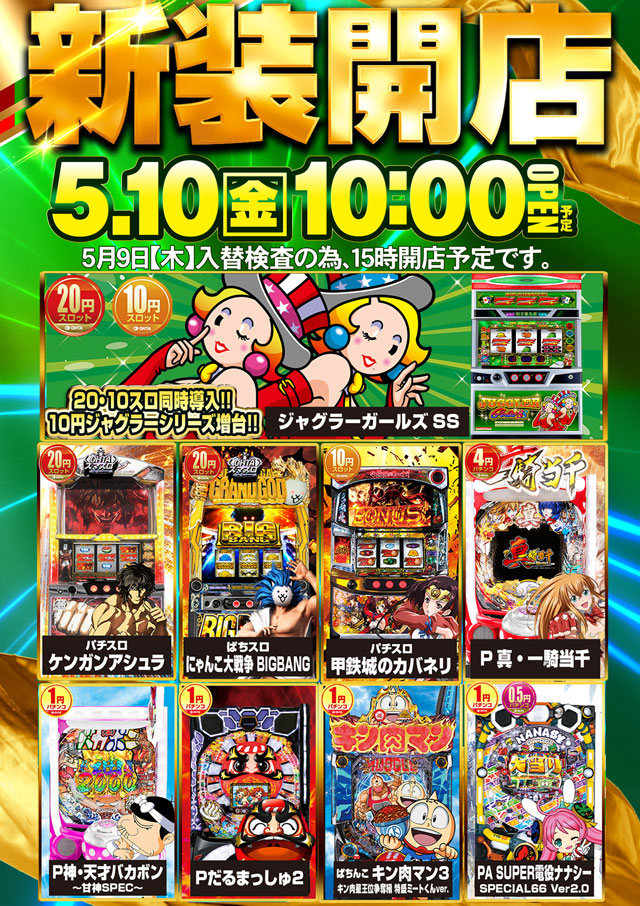 5月10日(金)新装開店!!あさ10時開店!(予定)