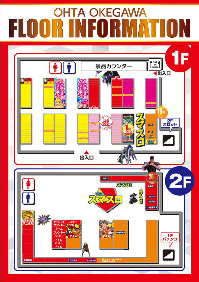 [パチ] 4円:30台 100円/90玉:135台 0.55円:45台 計210台 |