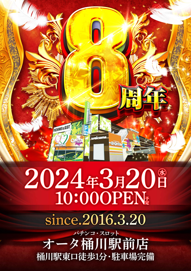 本日3月20日(祝)オータ桶川駅前店8周年!!