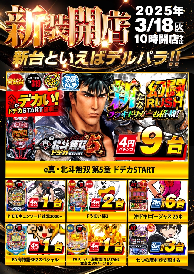 3月25日は超ド級設置店 デルパラ5飯能店で決まり!