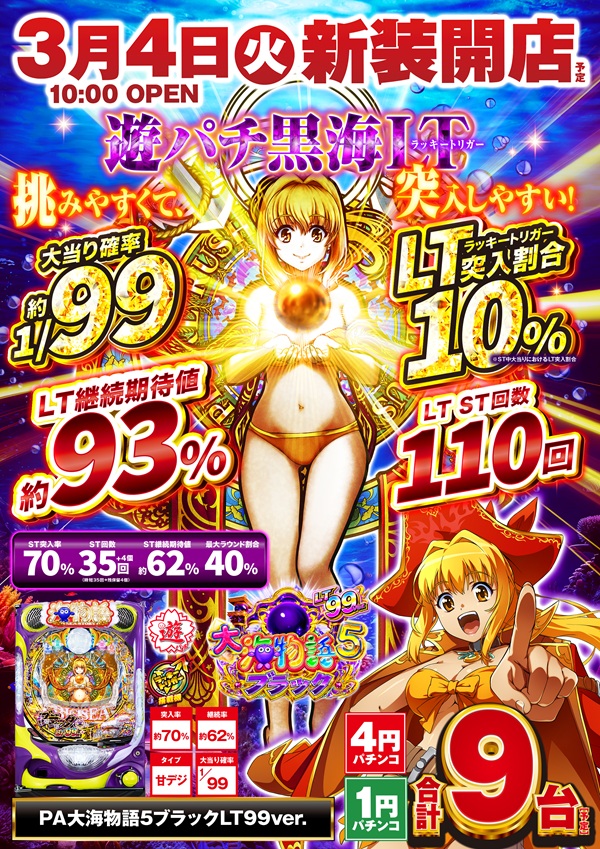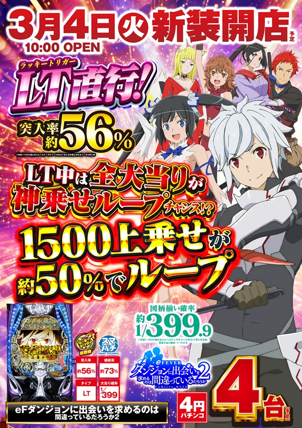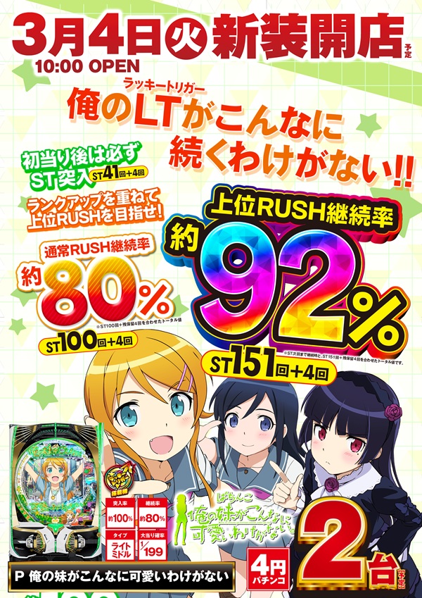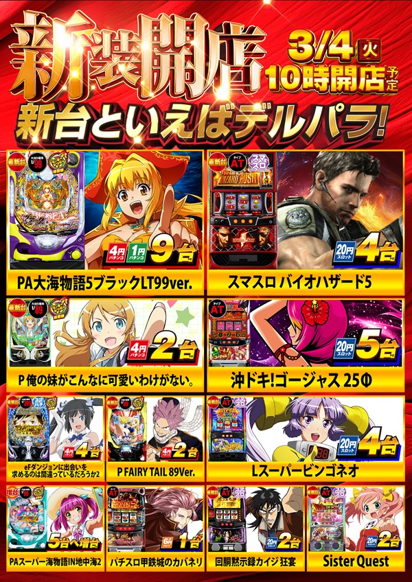 3月3日朝10時開店!新台入替に伴いレイアウト変更!