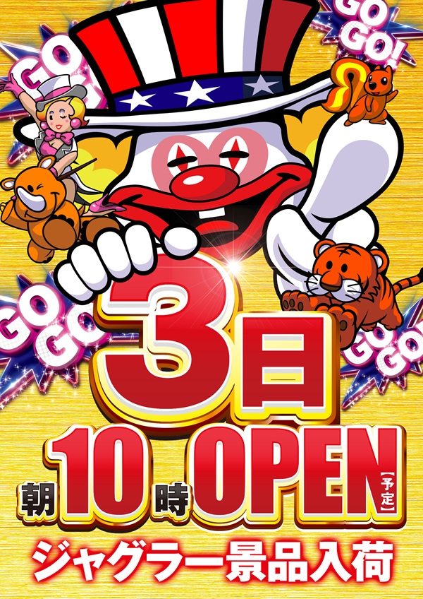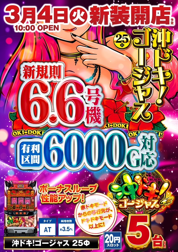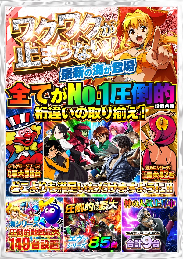 本日10時開店!地域最大の沖ドキ&ジャグ!看板機種で遊ぼッ‼