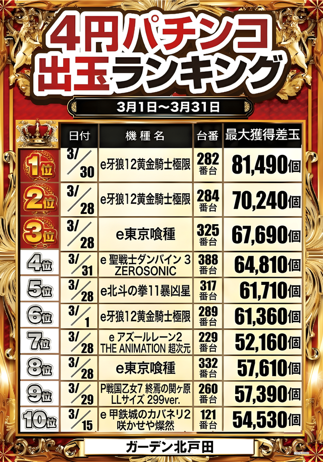 格の違いを魅せつけろ!1月10日(土)ガーデン北戸田にて、DMMぱちタウンの「格付けスピリッツ」を実施。その結果の中から、ぱちタウンが注目すべきポイントを厳選してユーザーにお届け!プレイヤーが楽しんだ一日を下記データにて振り返ってみて欲しい。