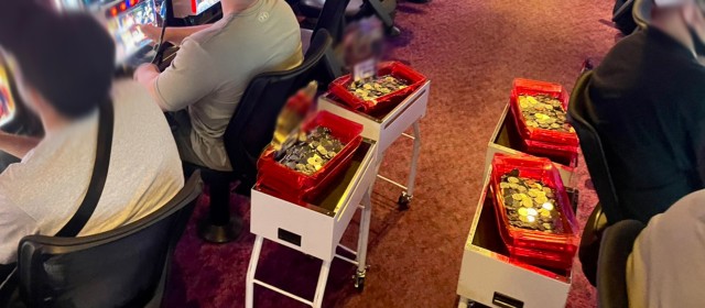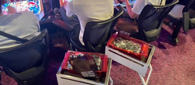 まずは優秀30台のPICK UPから。この日は前回と同じく30台全てが差枚数+2千枚以上を達成、+5千枚以上も前回と同じく5台となった。後述する横並び好況スポット以外でも+3千枚・4千枚クラスが複数見られ、店内はドル箱使用台で溢れていた。