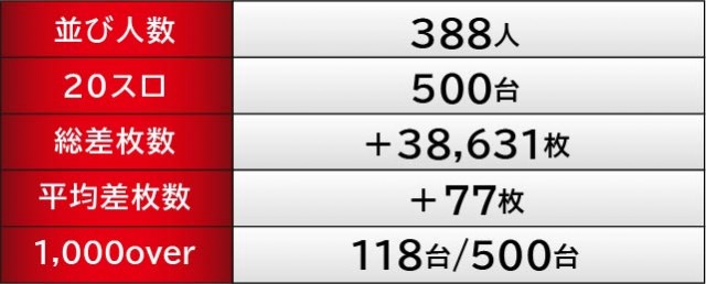 5月3日、埼玉県某店にて「ヒーローズレポート」が実施された。朝から駆けつけたファンは388人となっており、同店に対して大きな信頼を寄せている様子が窺える。同店としてもプレッシャーがある中だったが、当日は総差枚数+38,631枚という結果で勝利。難なくプラス差枚を達成するだけでなく、各機種にて大きな盛り上がりが発生していたわけだが…さっそく詳細データとともに、当日の様子をお届けしよう!