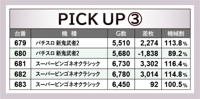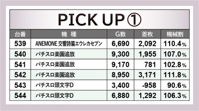 『スマスロ北斗の拳』496番台+13,702枚という凄まじい熱気を確認でき、ファンは羨望の眼差しを向けていたのが目に焼きついた。また、全体的に5千枚OVERを達成するが多く見られる。回転数を見ても朝からじっくりと打ち込まれた機種が多いことから、ファンは相当な手応えを感じていたのかもしれない。そして何よりも、幅広い機種が名を連ねているため、店内各所にチャンスが眠っていた点は見逃せない。