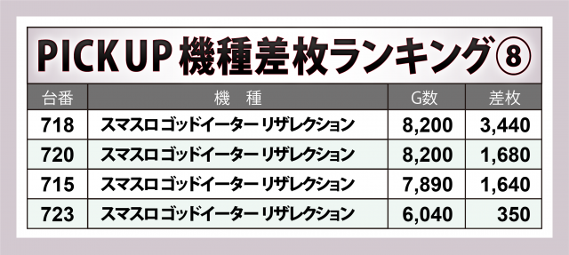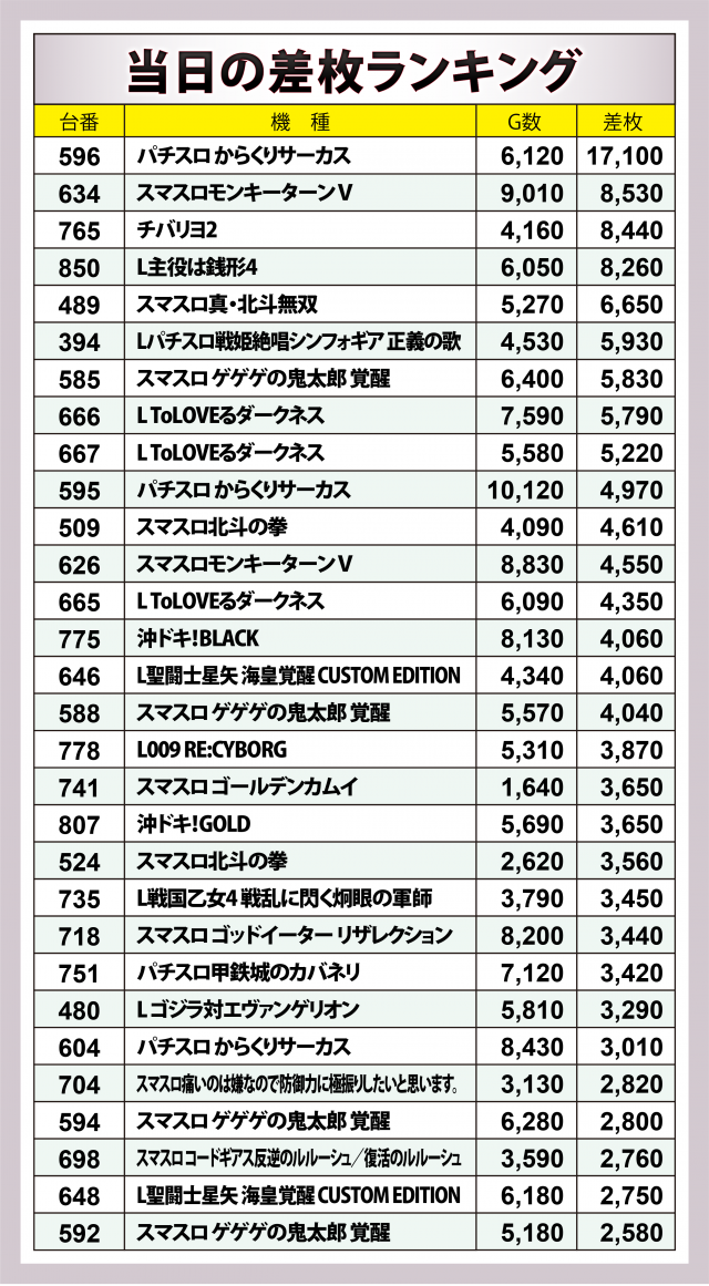 『からくりサーカス』の超絶出玉やベスト30台が残した差枚数から言えるのは、同店の実力の高さを表した結果と言えるだろう。