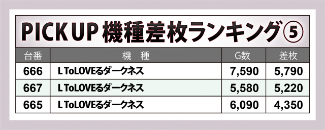 また『スマスロ ゲゲゲの鬼太郎 覚醒』では+5,800枚超・+4,400枚超が1台ずつ&+2,000枚超×2と、『からくりサーカス』に負けず劣らず。さらに『L ToLOVEるダークネス』では+5,000枚超が2台&+4,400枚弱が1台と、スマスロにビッグヒットが連発。