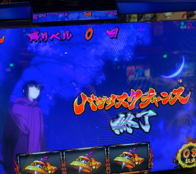 「朝から三日月でやる気メーターが一向にレッドゾーンに向かわない中、同色バジリスクチャンス(以下BC)がポンポンポンと現れます。