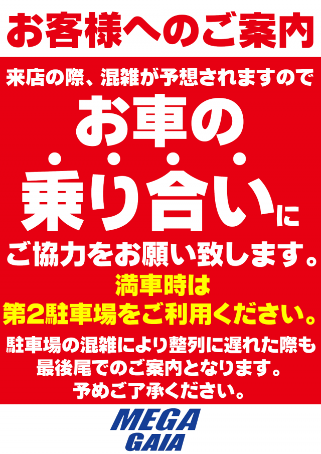 お並び順の入場ではございません。入場順番決めは入場くんオンラインより当日朝8:00~9:30までに参加をお願い致します。 |