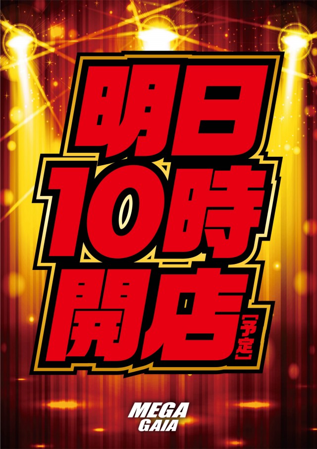 『土日もメガガイアへ』明日10:00開店