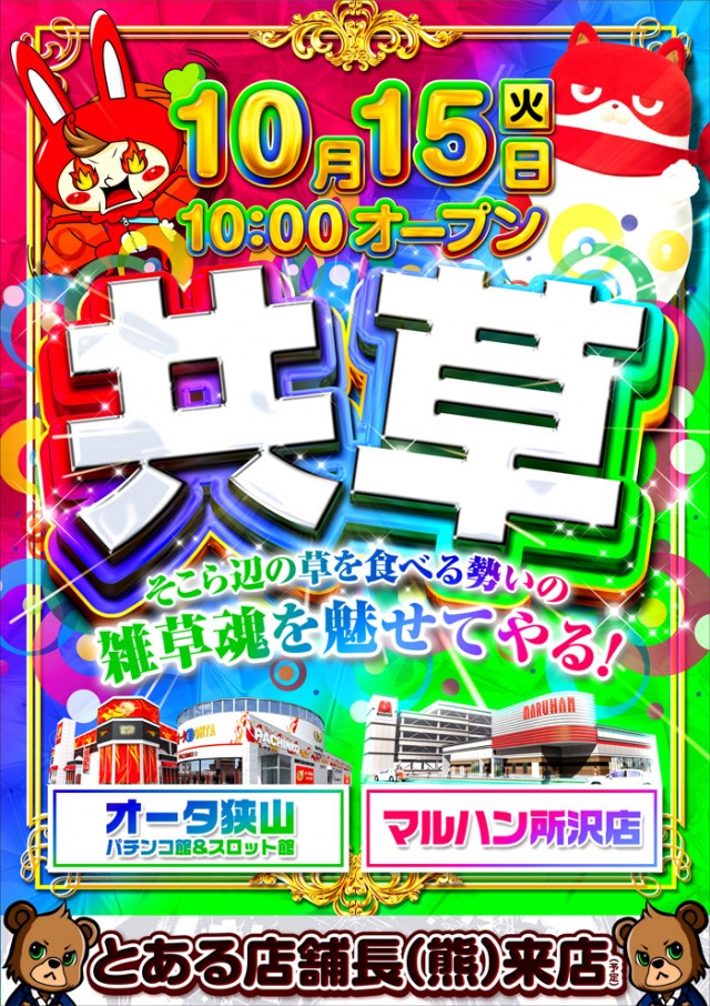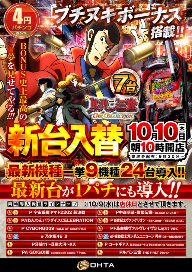 ★☆本日10月10日(木)オータ狭山両館 合同新台入替☆★