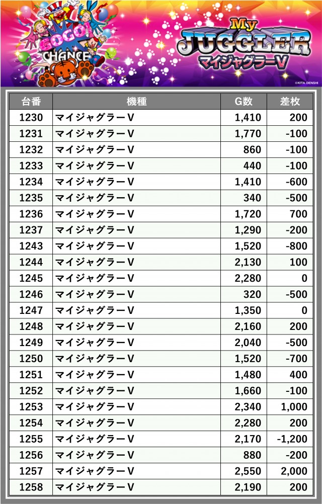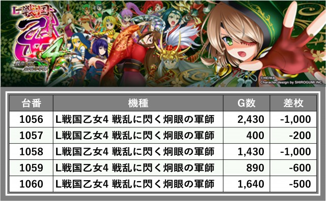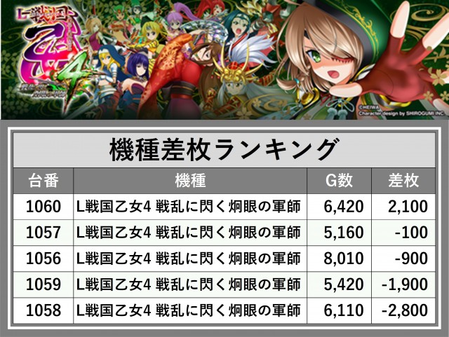 厳選された取材対象機種をはじめ、その他スロット全体から好記録が飛び出した!プレイヤーが楽しんだ1日を下記データにて振り返ってみて欲しい。