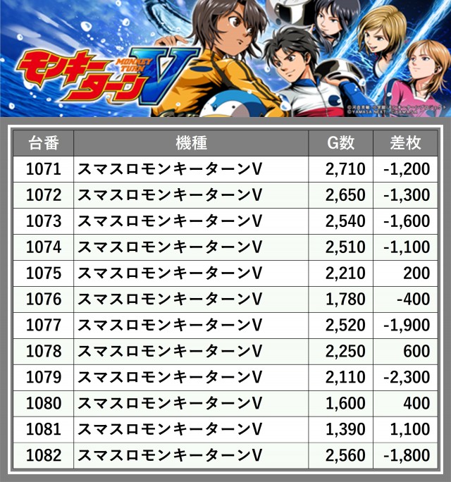 厳選された取材対象機種をはじめ、その他スロット全体から好記録が飛び出した!プレイヤーが楽しんだ1日を下記データにて振り返ってみて欲しい。