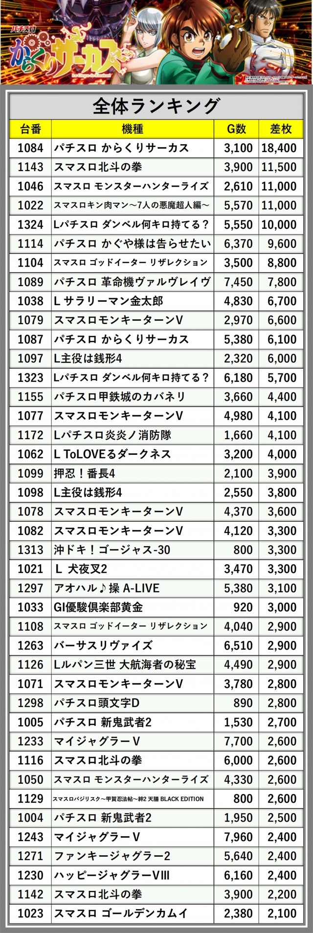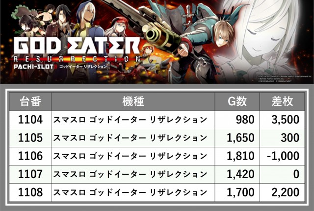 厳選された取材対象機種をはじめ、その他スロット全体から好記録が飛び出した!プレイヤーが楽しんだ1日を下記データにて振り返ってみて欲しい。