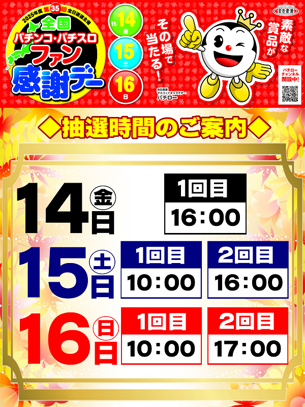 1位 11月23日(日) 2位 12月9日(火) 3位 11月29日(土)