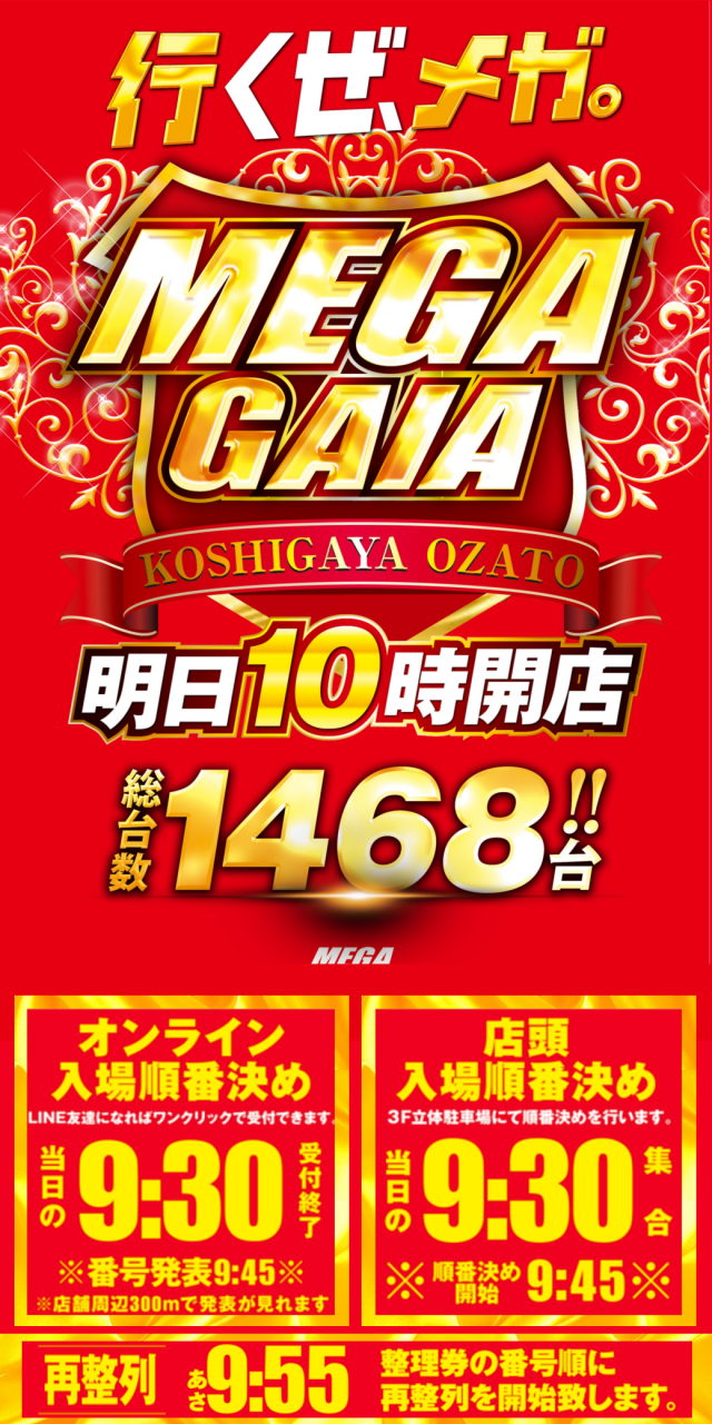 お並び順の入場ではございません。①オンライン入場順番決めは当店LINEより、当日朝8:00~9:30までにご参加をお願い致します。三階の立体駐車場までお集まり頂き、再整列時間は9時50分となります。 |