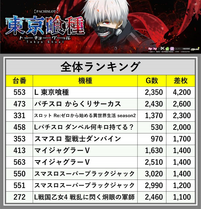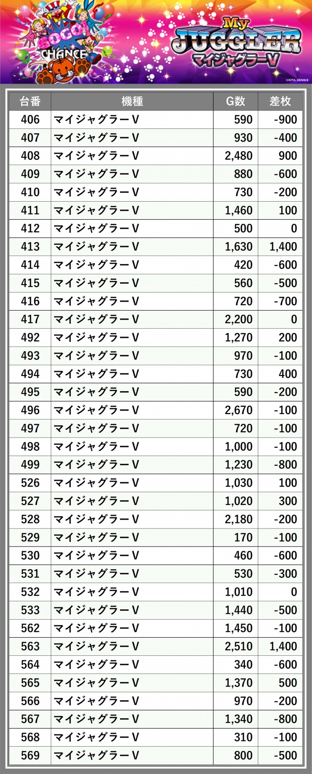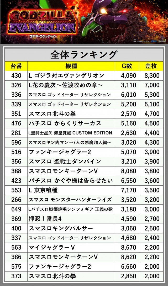 厳選された取材対象機種をはじめ、その他スロット全体から好記録が飛び出した!プレイヤーが楽しんだ1日を下記データにて振り返ってみて欲しい。
