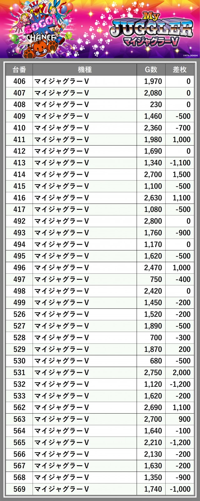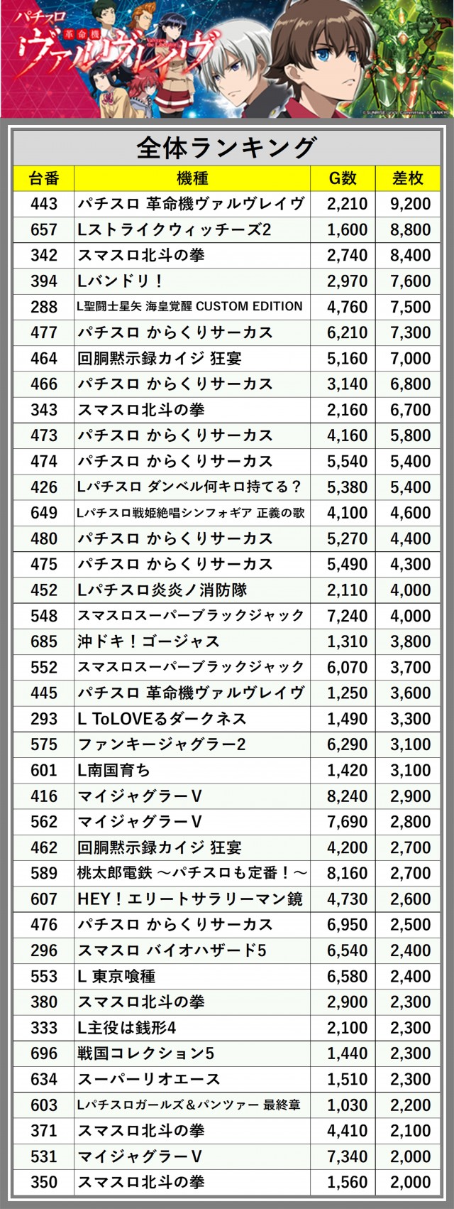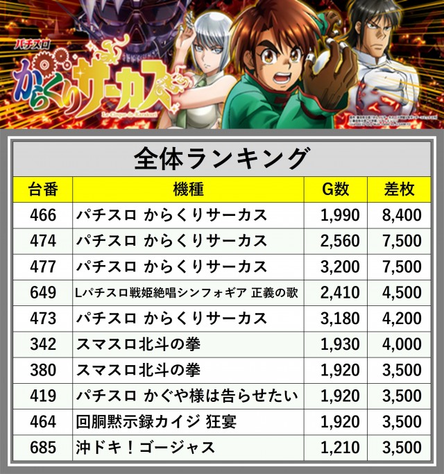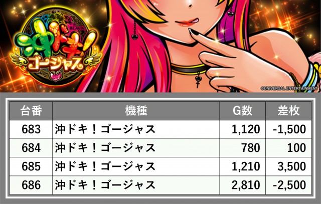 厳選された取材対象機種をはじめ、その他スロット全体から好記録が飛び出した!プレイヤーが楽しんだ1日を下記データにて振り返ってみて欲しい。