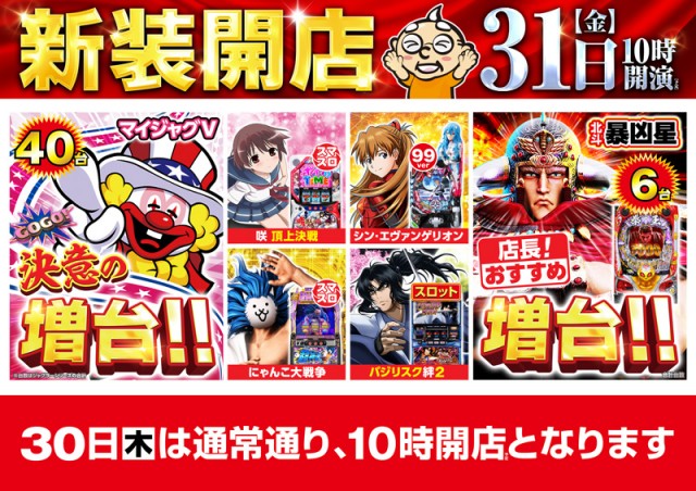 年中無休(新装開店前日のみ14時開店の場合があります) |
