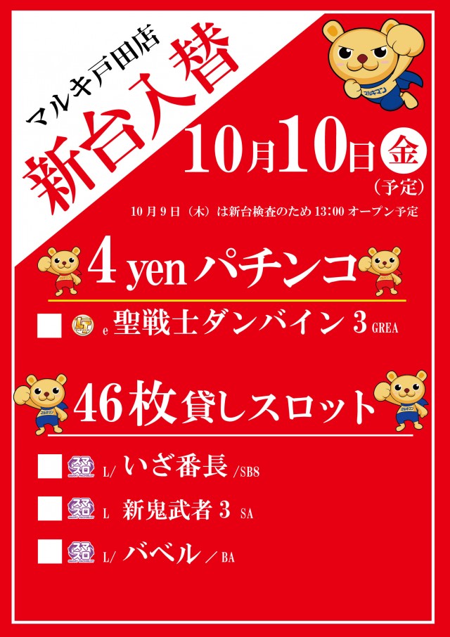 🍡🍡10月10日【金曜日】🍡🍡新台入替(予定)🍡🍡