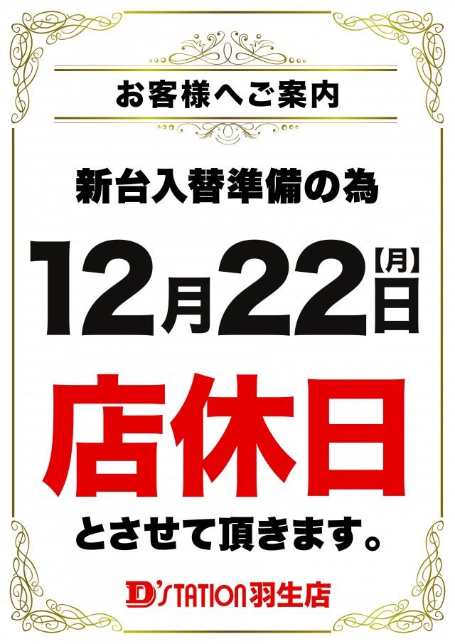 D’ステーション羽生店🌈12月23日 新台入替🌈