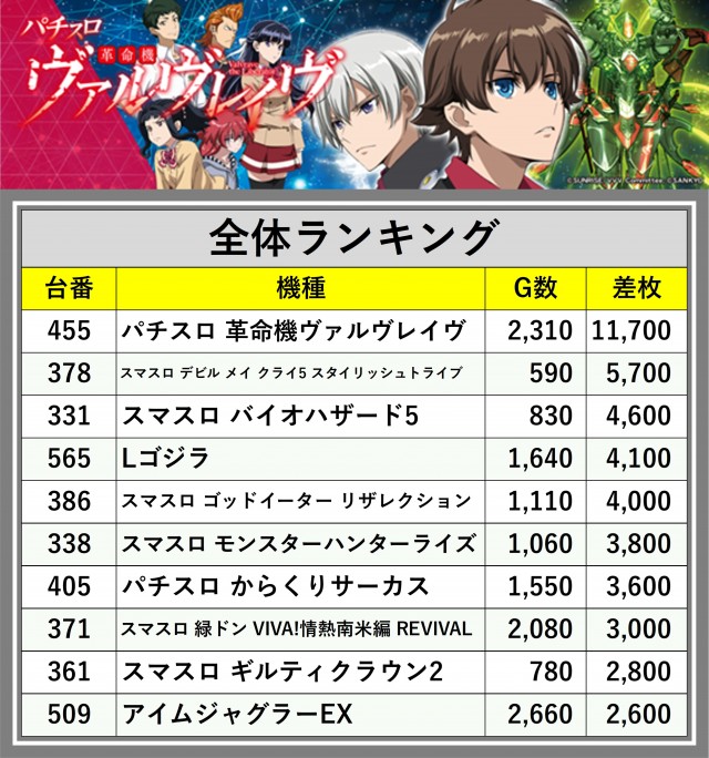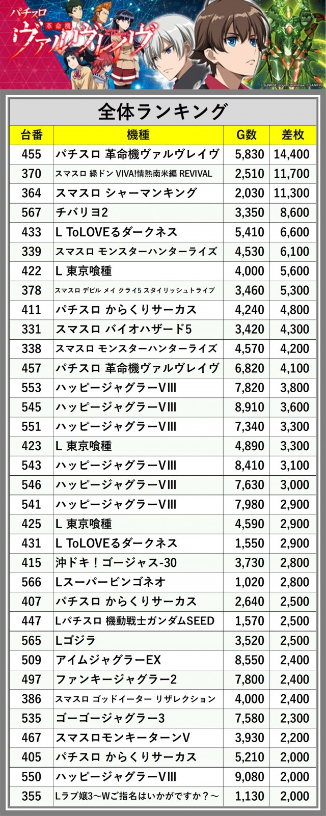 厳選された取材対象機種をはじめ、その他スロット全体から好記録が飛び出した!プレイヤーが楽しんだ1日を下記データにて振り返ってみて欲しい。