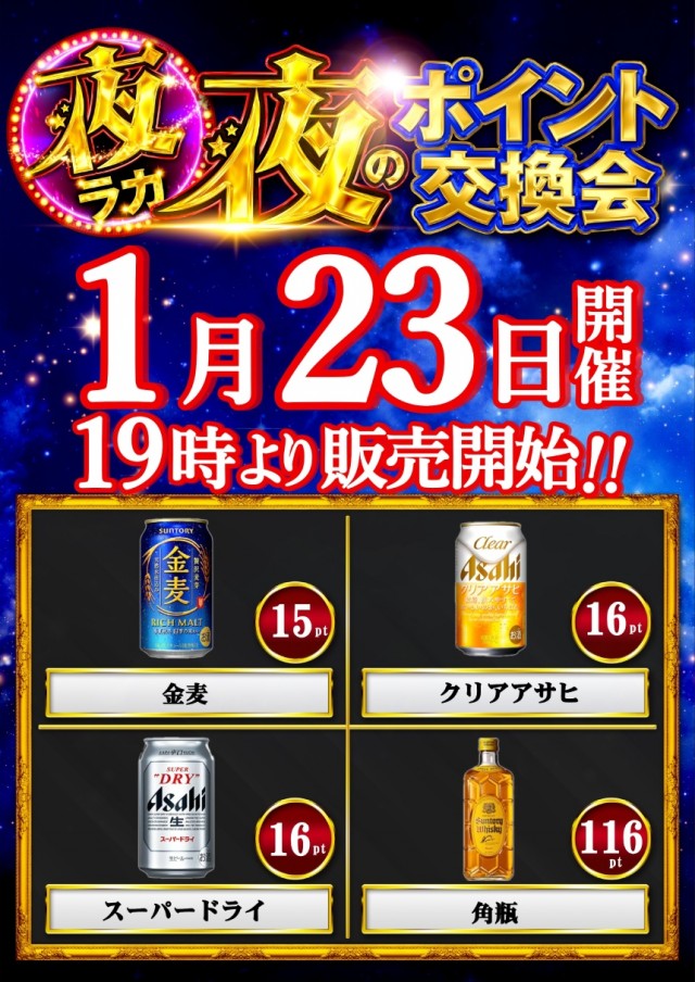 1/23(金)【夜ラカ】ポイント交換会 新規会員様大募集中!