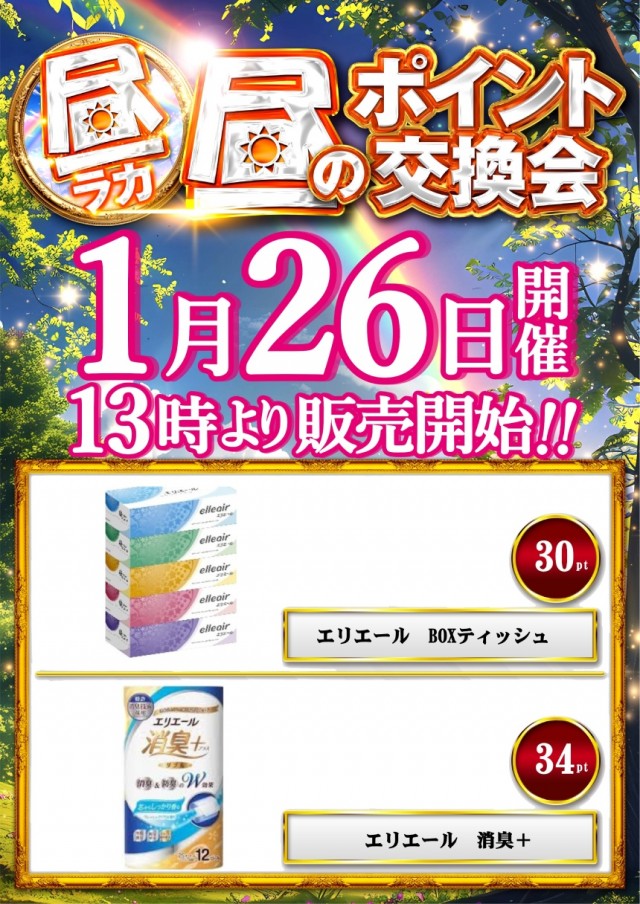 1/26(月)【昼ラカ】ポイント交換会 新規会員様大募集中