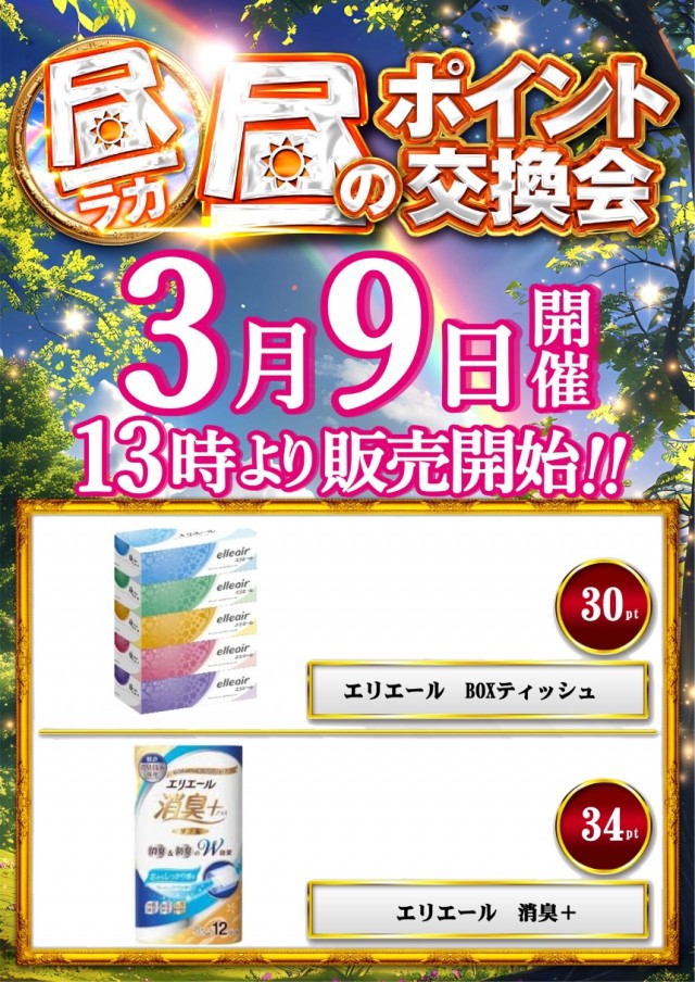 3/9(月)【昼ラカ】ポイント交換会 新規会員様大募集中!