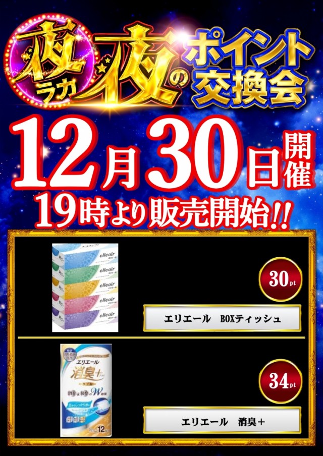 12/30(火)【夜ラカ】ポイント交換会 新規会員様大募集中