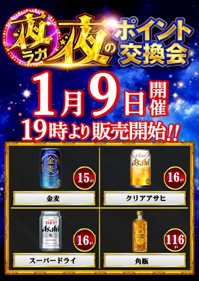 1/9(金)【夜ラカ】ポイント交換会 新規会員様大募集中!