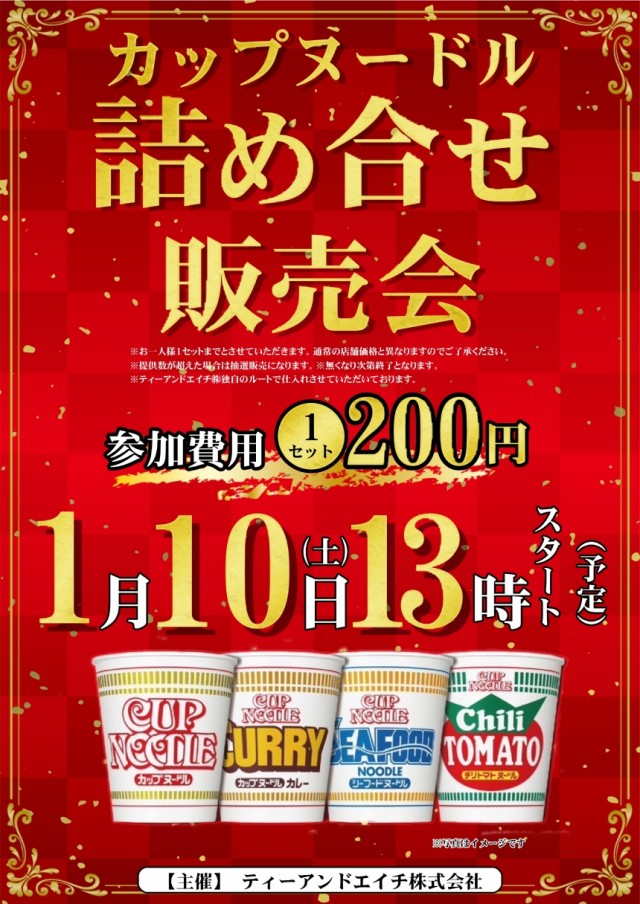 1/10 カップヌードル詰め合わせ販売会 3連休はラカータへ
