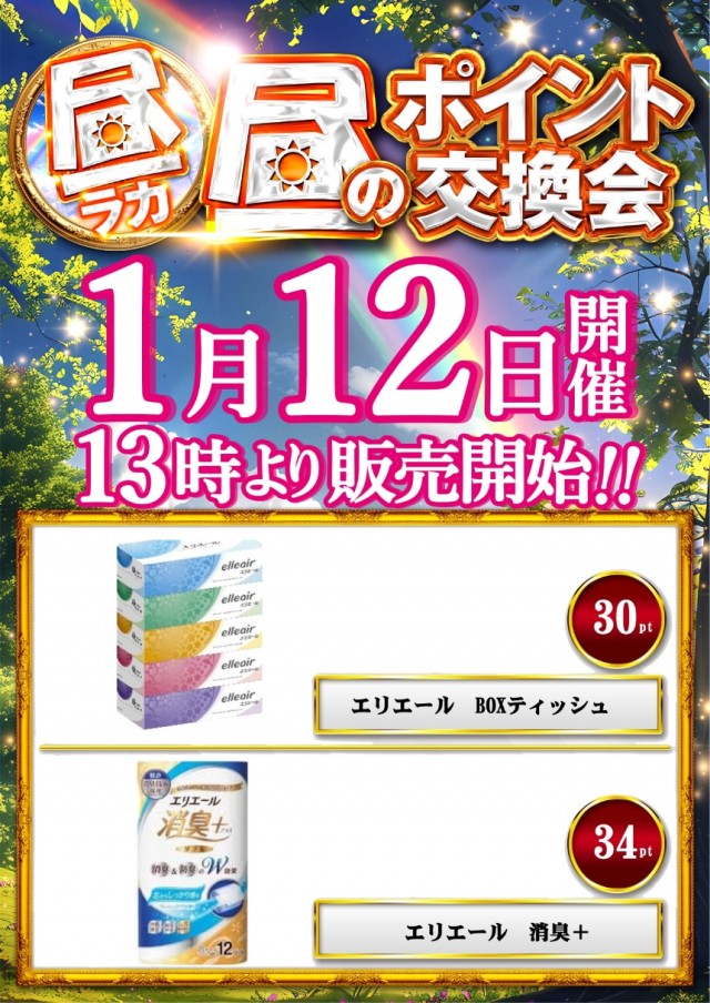 1/12(月)【昼ラカ】ポイント交換会 新規会員様大募集中