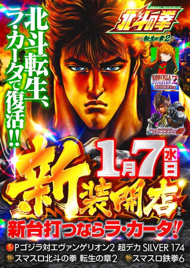 1/7(水)北斗転生2遂に登場 2026年最初の新装開店!!