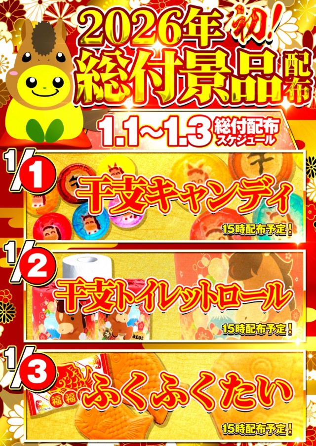 明けましておめでとう御座います 1/1~1/3総付景品配布!