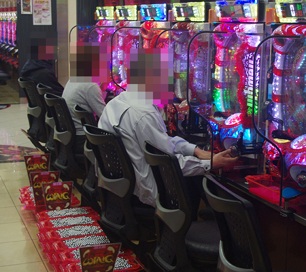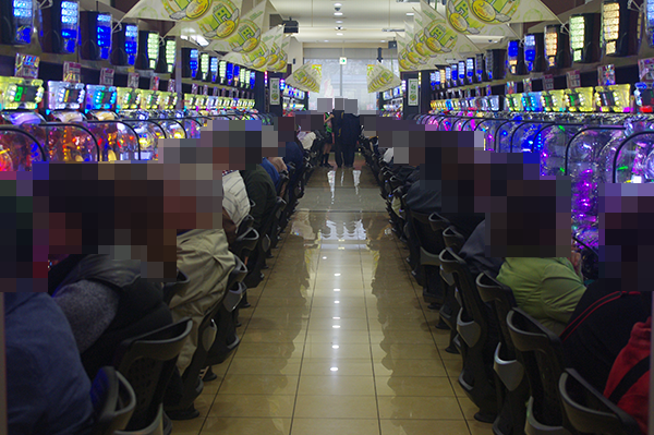 1円パチンコでは海物語シリーズが人気と、空席も少ない。