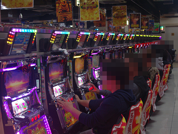 15時に近づいてきた頃の4円パチンコでは、「ぱちんこCR真・北斗無双」や「CR牙狼 魔戒ノ花」がほぼ満席と、にぎわいも大きい。