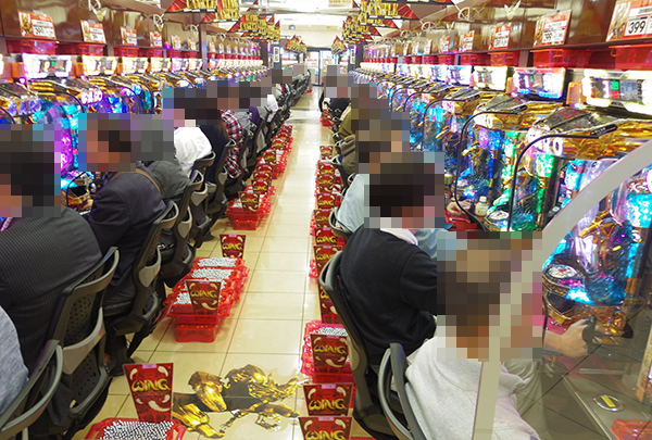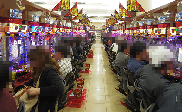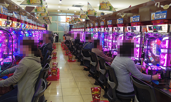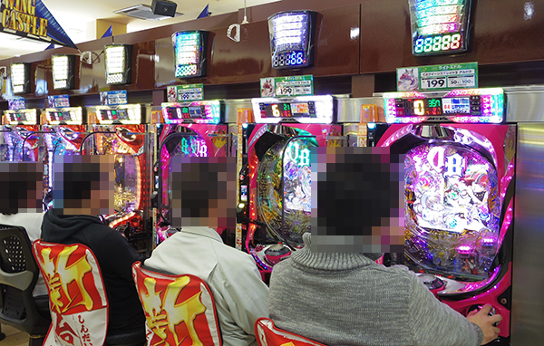 4円パチンコでもっとも人気を集めていたのは「ぱちんこCR真・北斗無双」。笑みを浮かべているプレイヤーもおり、機種の魅力をしっかりと堪能できていたようだ。