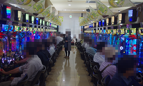 15時を過ぎた頃の4円パチンコをみてみると、「CR牙狼 魔戒ノ花」が満席状態。機種の特徴を活かしているようなプレイヤーが多く、満足度の高さもうかがえた。