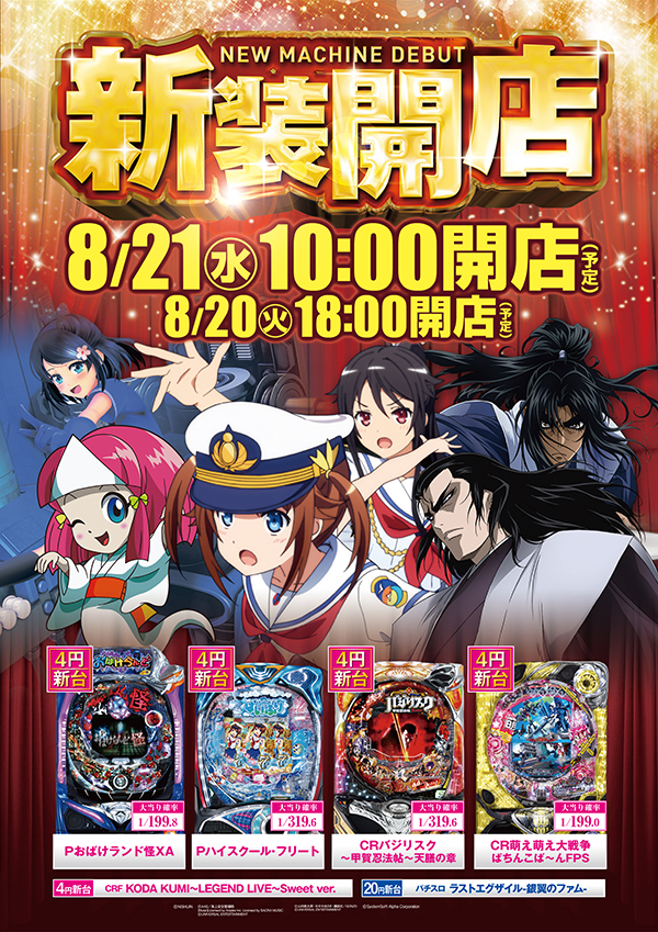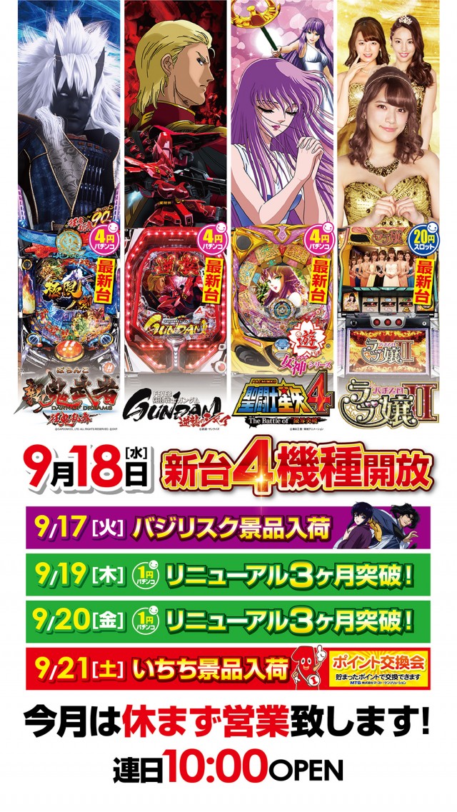 8月12日(土)最新機種ガンダムSEED導入済!10時開店!