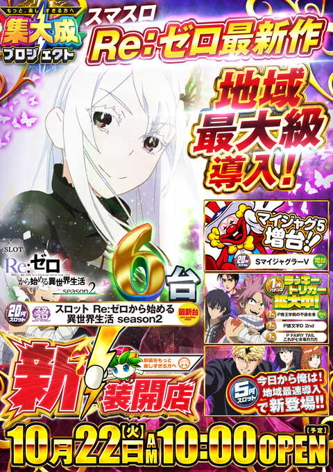 明日10月22日(火)🌟新装開店🌟スマスロリゼロ6台導入🌟