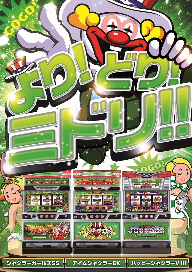 このあとジャグラーで一勝負。当店のジャグラーはよりどりミドリ