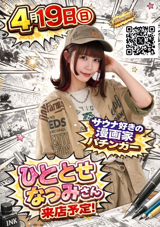 只今、漫画家パチンカーひととせなつみさん実践来店中👍👍👍
