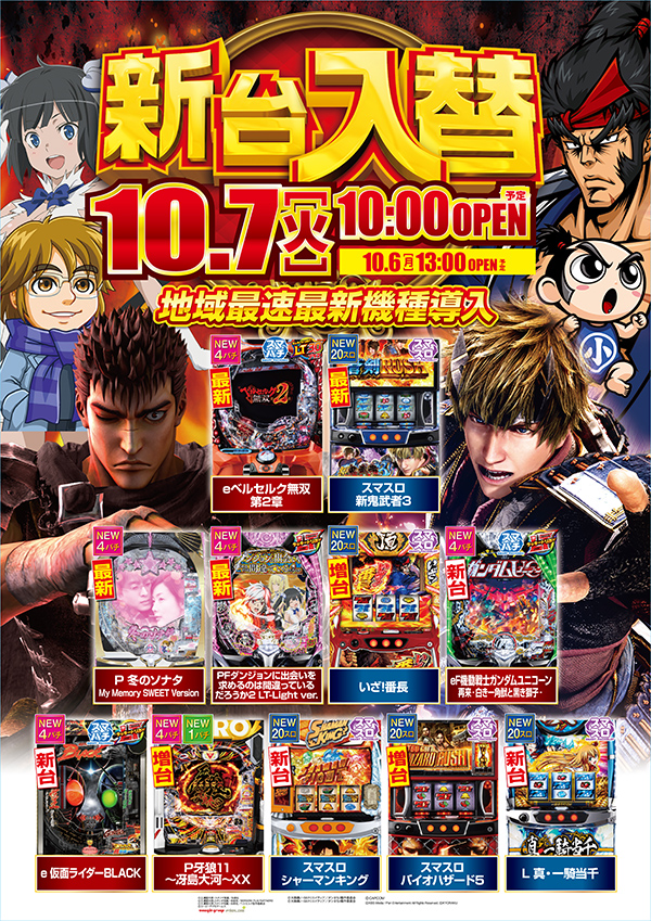 10月7日新装開店☆「新鬼武者3」など最新機種地域最速導入☆