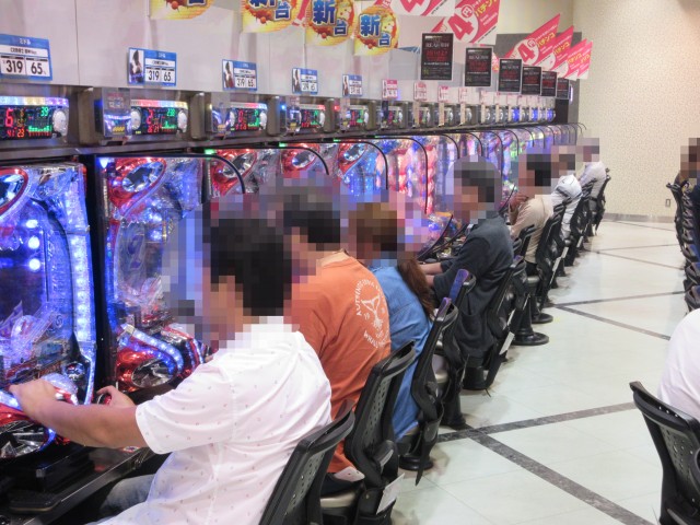 一方、20円スロットコーナーでは、ジャグラーシリーズが人気で、若者から年配者まで幅広い世代のプレイヤーたちが遊技を楽しんでいた。