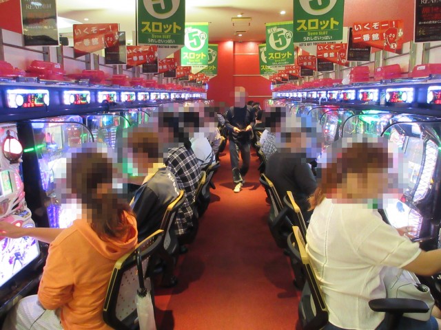 5円スロットコーナーでは、「SLOT魔法少女まどか☆マギカ」などの人気機種を筆頭に、多くのプレイヤーで席が埋まり、シマ一帯が盛り上がりをみせていた。