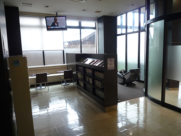 スペースを広く使用したストレスフリーなレストスペースはまさに快適空間。Free Wi-Fiも飛んでおり、食事処の併設やマッサージルーム完備など設備面でもポイントが高く、魅力がおおいに詰まっていた。